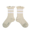 The Nicole varsity high socks, crafted from soft lambs ribbed Egyptian cotton, feature sporty stripes and a crochet lace top, blending an athletic aesthetic with delicate charm. These incomparably soft socks offer a perfect fit that caters to even the most discerning consumers, courtesy of their soft ribbed heel. With a reinforced heel and a seam positioned atop the foot, they promise maximum comfort.