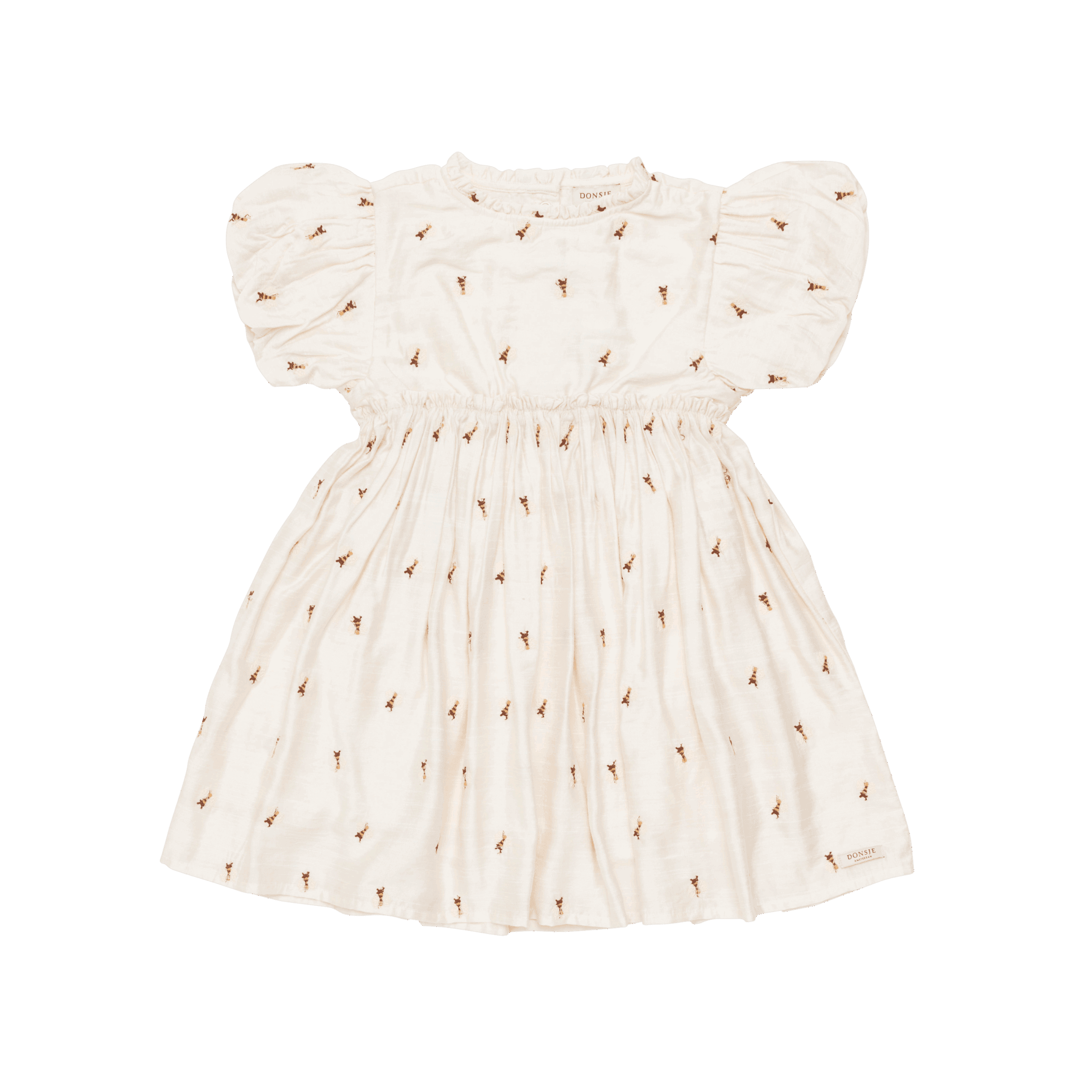 The Sweet as Honey dress is perfect for twirling and dancing all day. The Clarize sundress combines style and charm, making it ideal for long, sunny days outdoors. Made from soft, flowy viscose with embroidered bees all over, it’s fully cotton-lined with hidden snap fasteners at the back, elasticated sleeve openings, and a cinched waist for extra comfort.