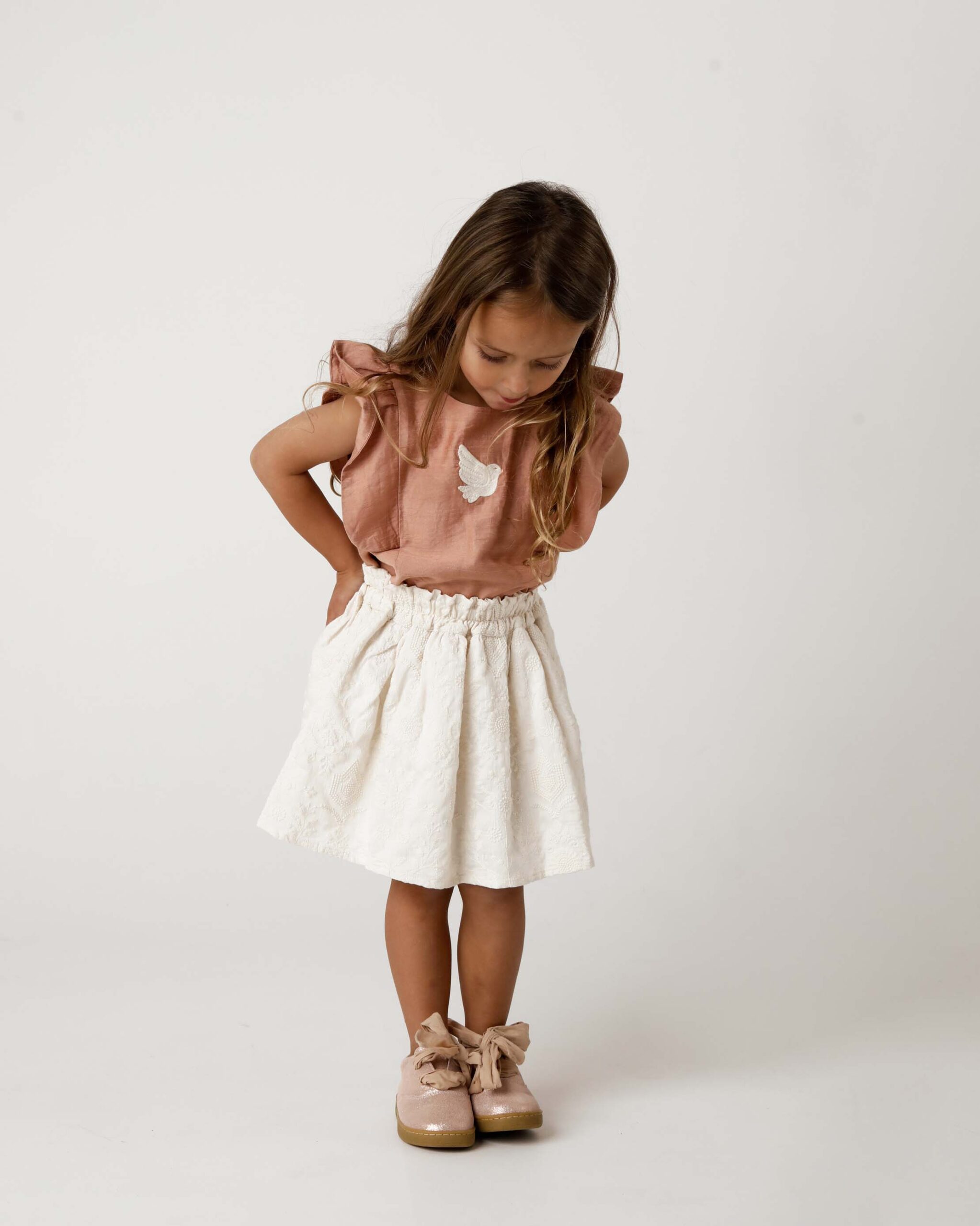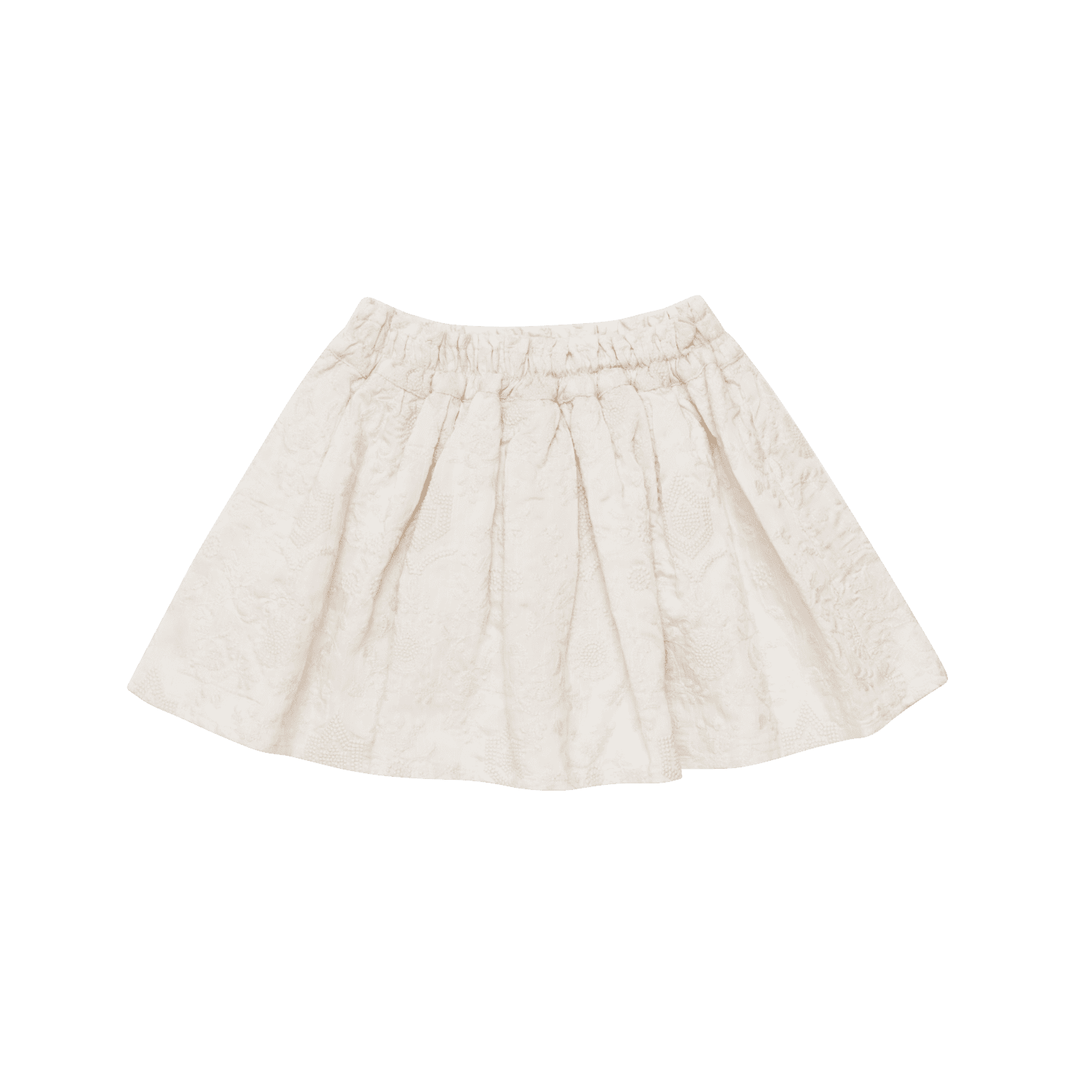 The Raylen warm white skirt is a true delight, adorned with intricate floral embroidery throughout. Made from luxuriously soft viscose, it also has a full cotton lining, an elastic self-ruffled waistband, and a fully gathered bottom. Ideal for parties or special occasions, this skirt is the perfect blend of style and elegance.