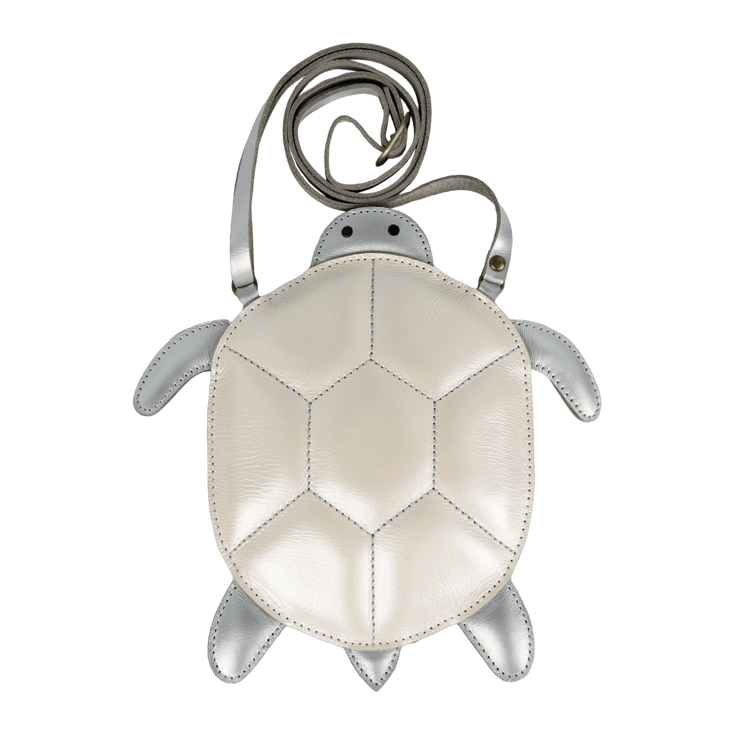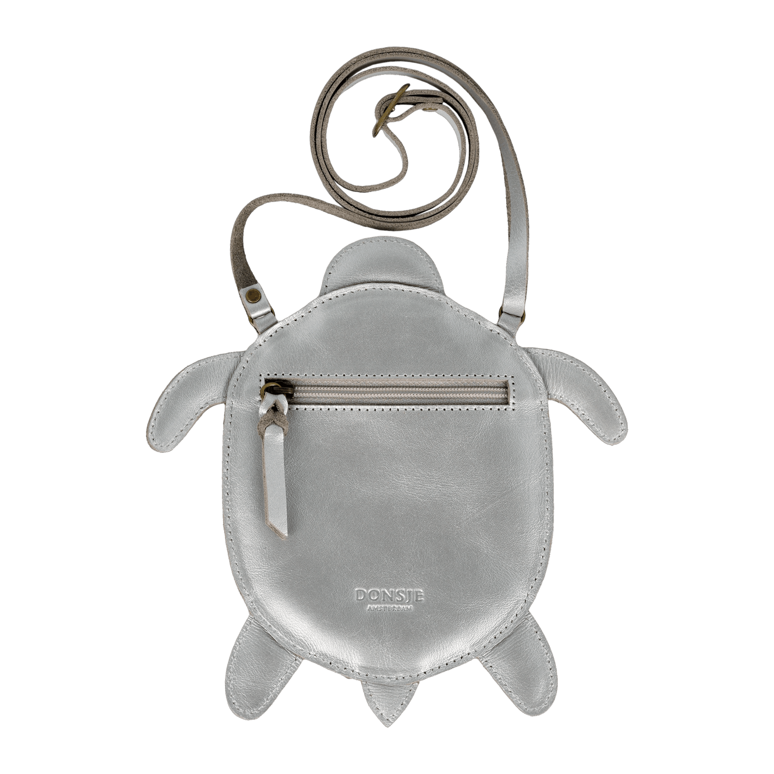 The stunning Thysa Purse, made from premium metallic leather, is ideal for your little daydreamer. With an adjustable strap, a back zip closure, and a silver-grey metallic turtle design, it’s a truly eye-catching accessory. The purse measures 10 cm in length and 13 cm in width.