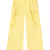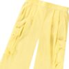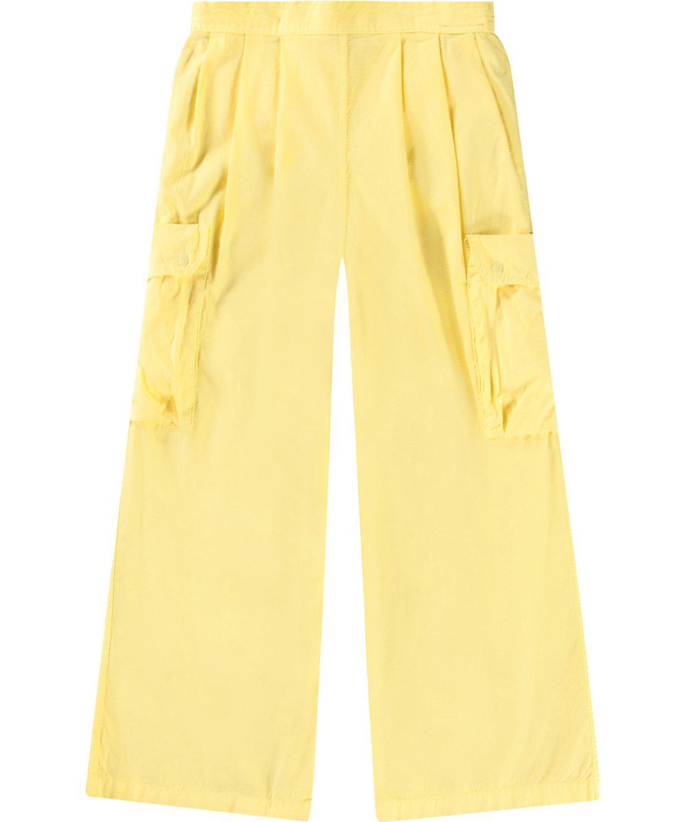 The Audie Sunbright yellow pants are crafted from organic cotton and feature stitched snap-closure pockets on thigh.  They have a relaxed fit with wide legs at the front, adding volume for a baggy look.  Large pleats at the front further enhance the baggy style.  The waist is fixed at the front and elastic at the back, providing a comfortable fit and easy wear.