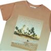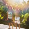 The Rame Waves t-shirt features an optical illusion of sunlight reflecting on water. This-sleeve t-shirt, in brown and light green, is made from organic cotton. Designed for comfort, it offers a loose fit and showcases a beach-inspired palm graphic accompanied by the wavy ‘Make Waves’. The tee is finished with a round rib cotton neckline and pairs seamlessly with the Nilson Island Board Swim Shorts.