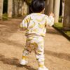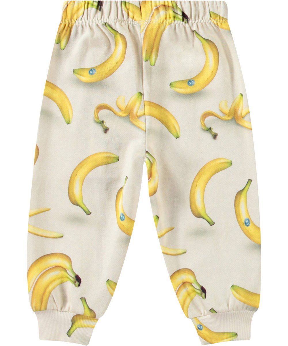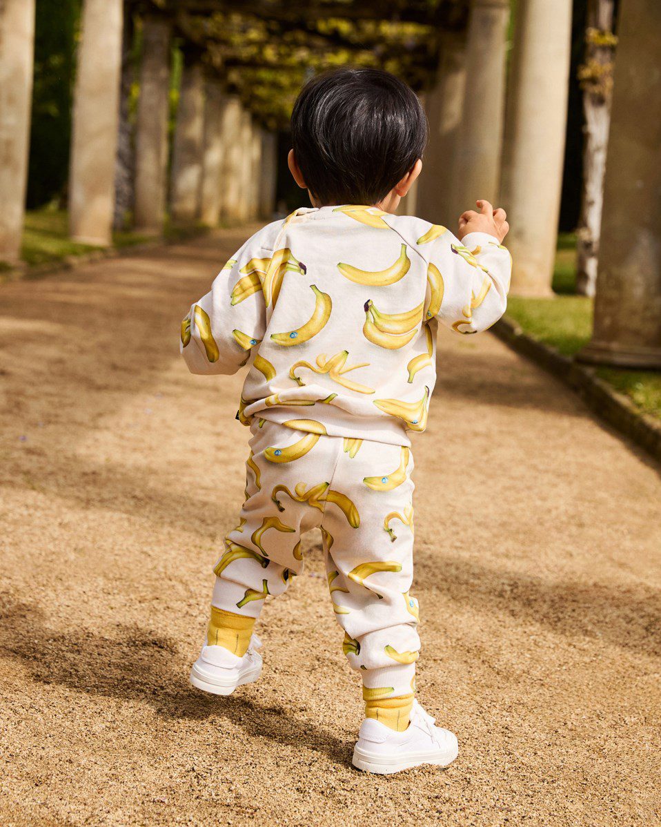 The Simeon Babynanas pants are thoughtfully crafted from soft lightweight organic cotton and are thoughtfully designed for babies and toddlers. They feature an allover banana print, adding a whimsical touch to your little one’s wardrobe. These beige French terry cotton pants are designed with an elastic waistband, a functional drawstring, and ribbed cotton cuffs. They allow for easy dressing and removal while providing freedom of movement. Pair with complementing pieces from the coordinating Babynanas collection, they are a stylish choice.