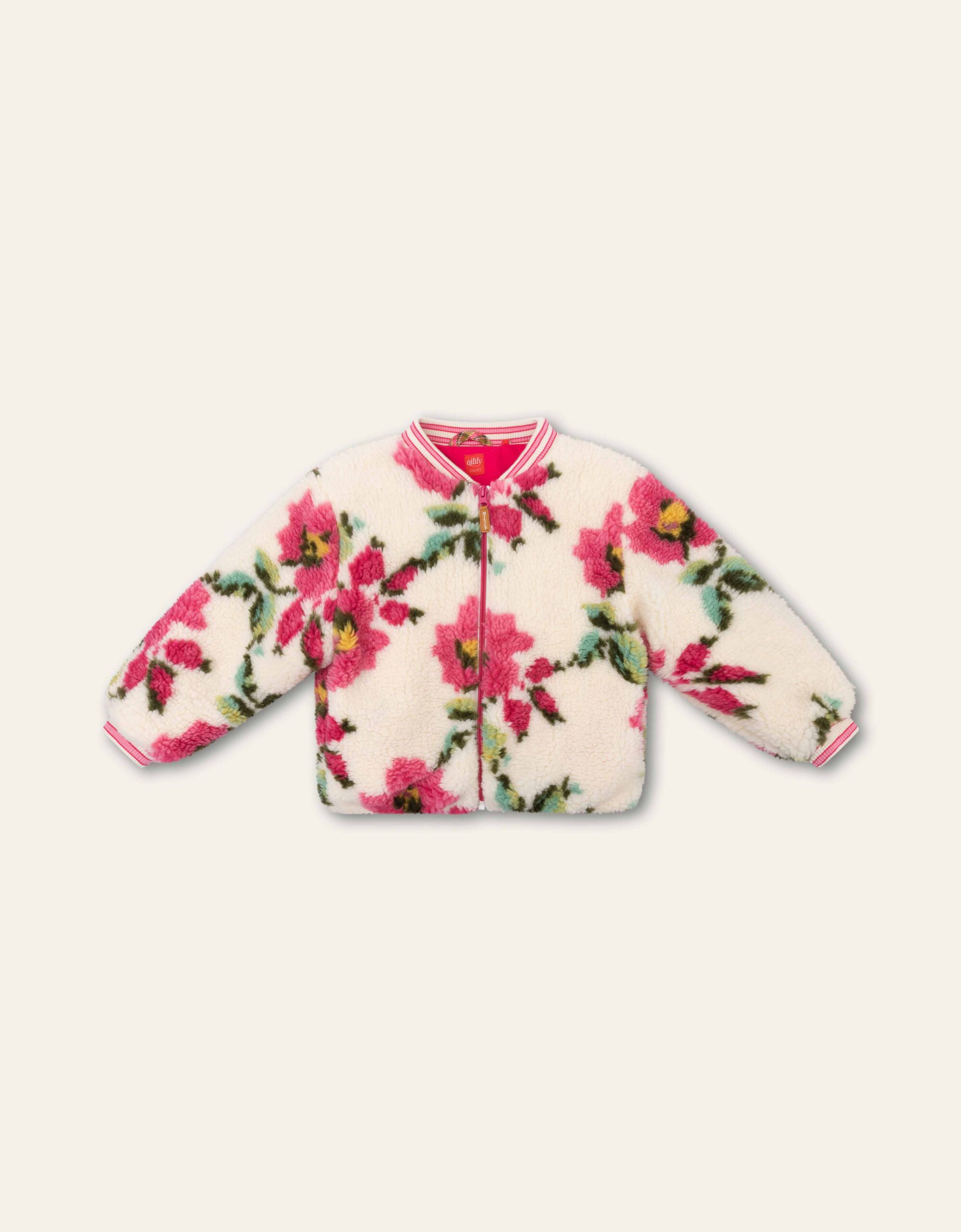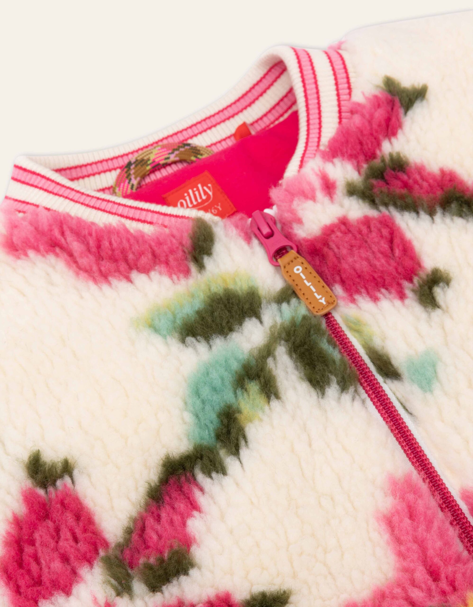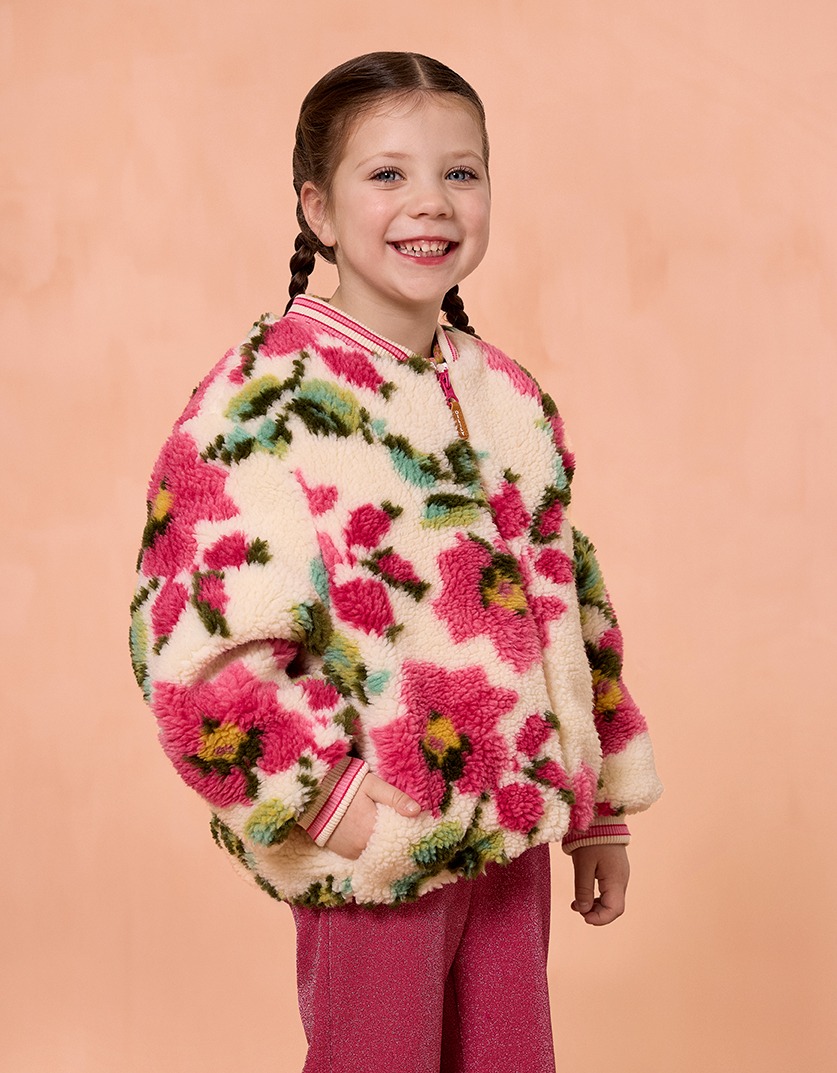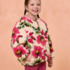 The cream Cottage Faux Bomber jacket features a stunning large floral print with a contrasting ribbed striped collar and cuffs. It’s fully lined and padded with recycled polyester fill for added warmth. The jacket includes a front zip closure with an internal flap for extra safety and insulation.