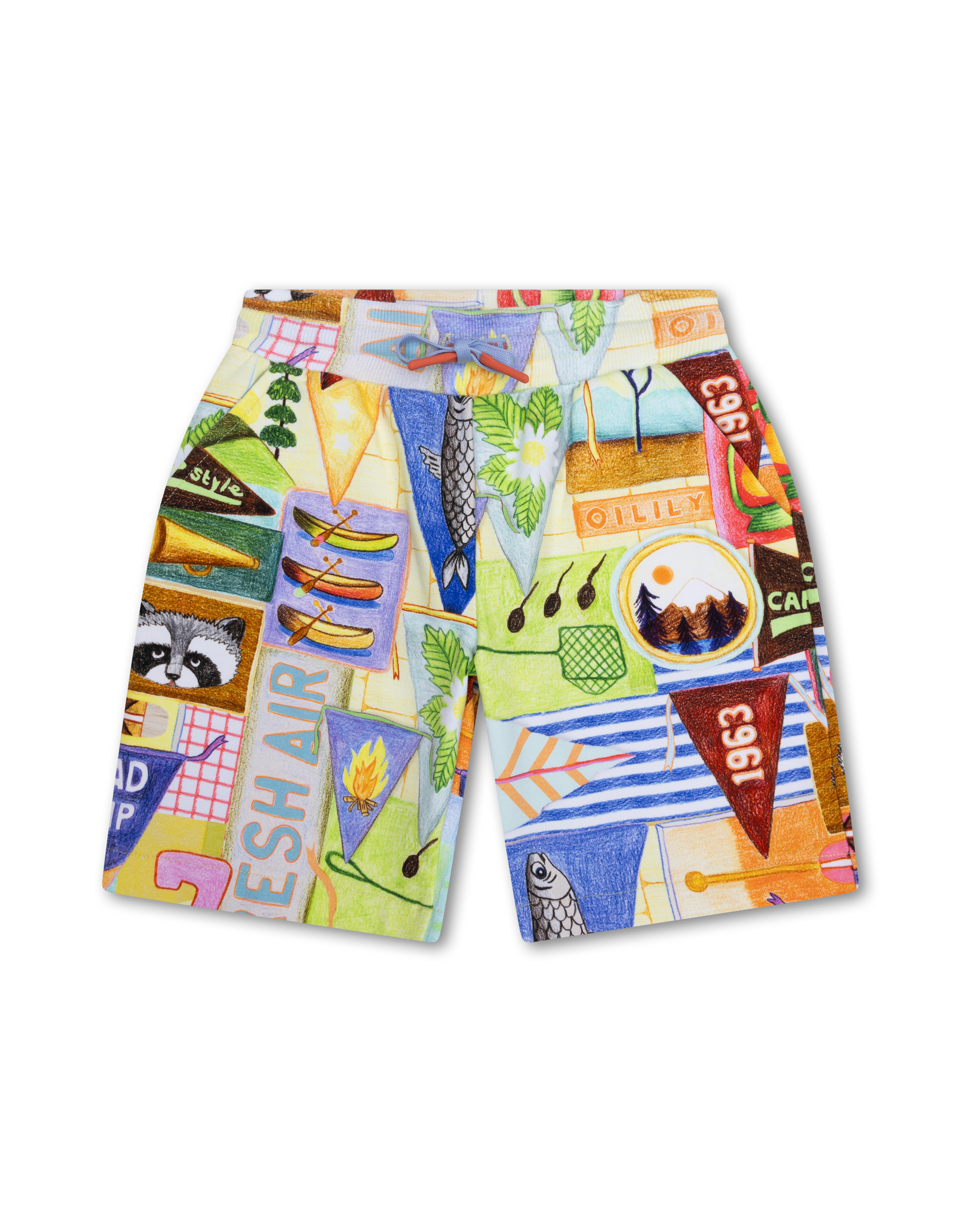 The PRINS Jogger Shorts are crafted from soft, stretchy organic cotton. The multicolored French terry sweat shorts have a vibrant and colorful allover print inspired by camping. They include a stretch elastic waistband, a functional drawstring, and two side pockets. These shorts pair well with the Har Boys Hoodie.
