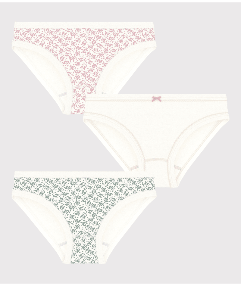 Petit Bateau 3-Pack Organic Cotton Floral & Solid Underwear Set